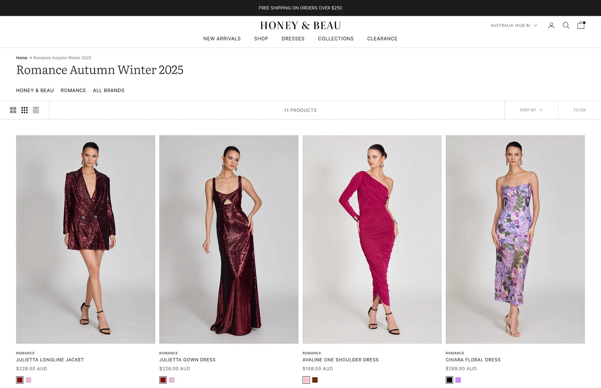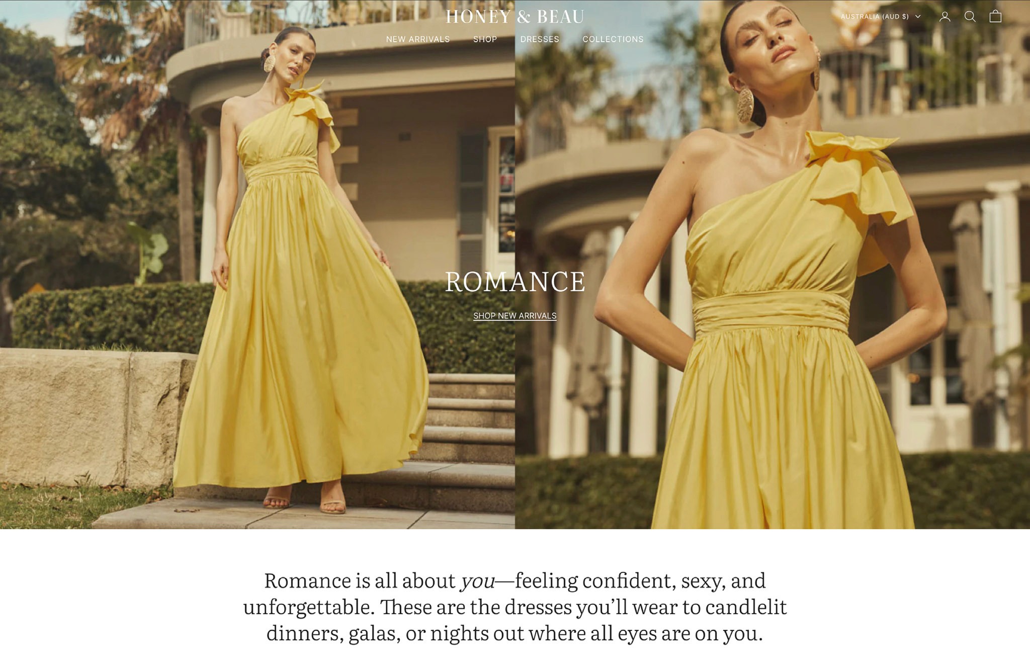 Honey & Beau was undergoing a complete rebrand, stepping into a fresh creative direction with new fashion designer Annemarie Chimarios. Along with launching a new collection, the brand needed a digital overhaul—merging three separate websites (Honey & Beau, Romance, and Maelle) into one seamless Shopify experience. The challenge? Ensuring each brand had its own distinct presence while keeping navigation intuitive and the shopping experience effortless.